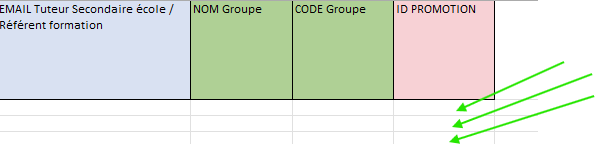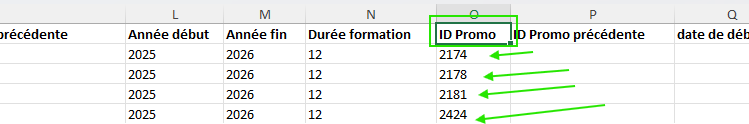 Remplir le tableau, sur chaque ligne sur la dernière colonne on retrouve l' ID promotion, vous pourrez faire correspondre le bon identifiant de promotion de chaque alternant.
