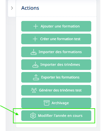Le bouton année en cours permet d'indiquer une année en cours pour toutes les formations pluriannuelles en une fois.