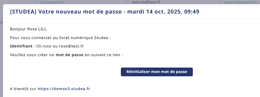 - Si l utilisateur ne reçoit pas le mail de STUDEA en raison d'un pare-feu trop rigide, il sera possible de copier coller ce mail directement depuis votre boite mail en prenant bien le lien qui se trouve dans le bouton ( clic droit sur le bouton copier l adresse du lien)